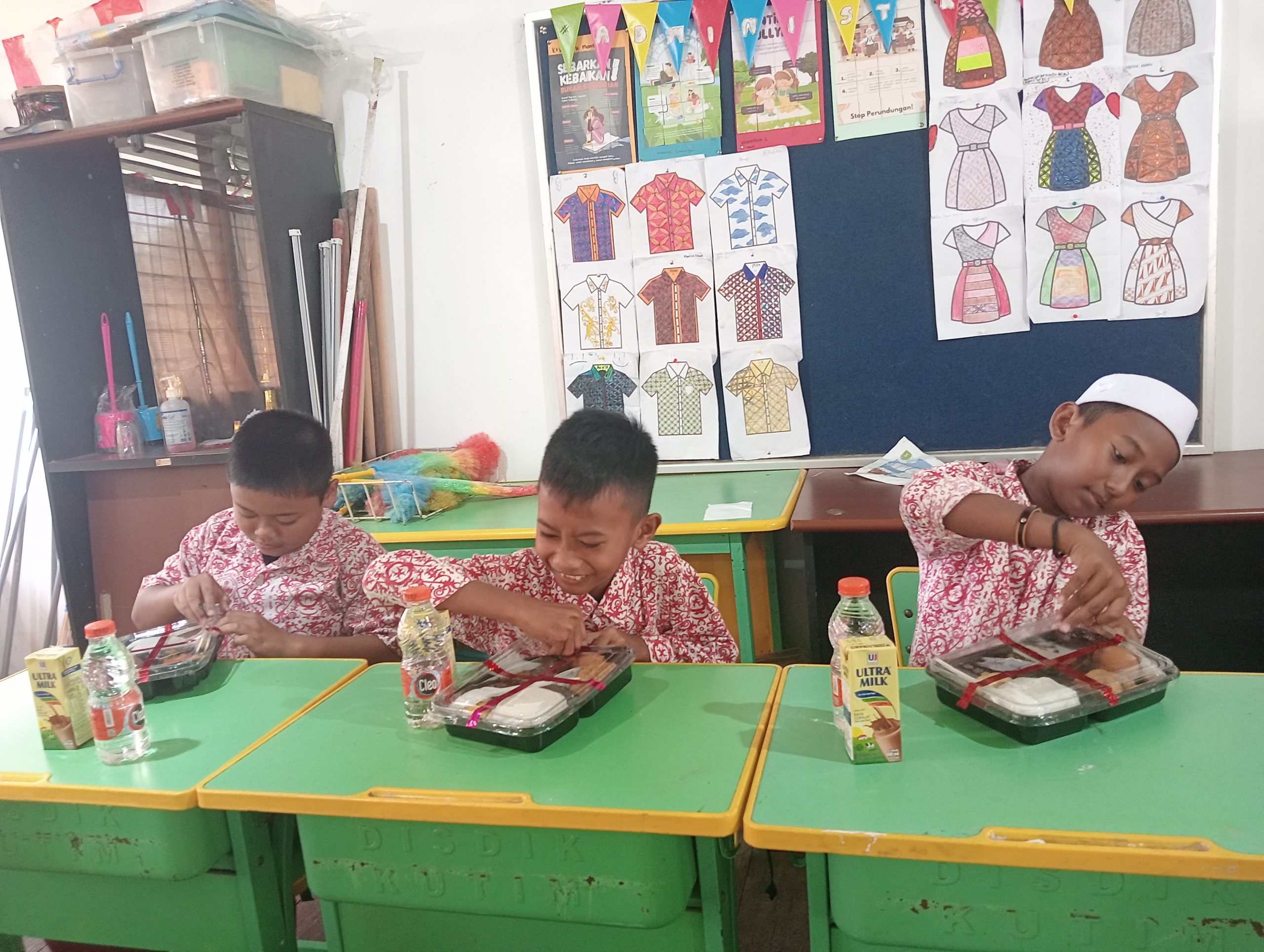 Anak-anak terlihat sangat antusias dan semangat mendapatkan kotak makan dilengkapi air mineral dan susu. Mereka beramai-ramai mengucapkan terima kasih kepada MERCY Kutim.